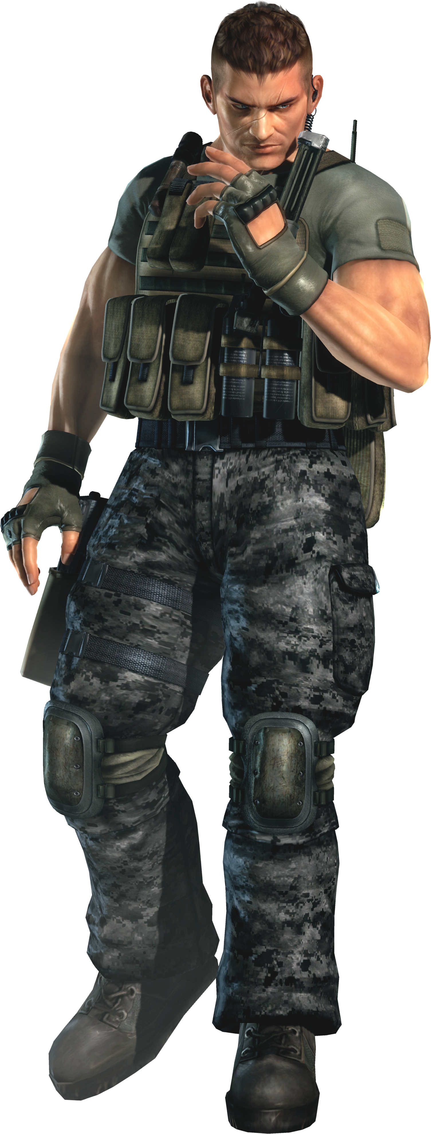 For Dead or Alive 5, his overall design was greatly changed. Although he is still tall and muscular, his hair has been changed so he has buzzed back and sides with longer hair on top of his crown. His face also looks more aged, worn, and serious, as if he has faced a lot of combat, with a rounded chin. He now also bears a thin scar that runs over his face from above the left eyebrow to the right cheek and another much larger scar that stretches across his chest in the opposite direction. Bayman received these two scars during the beginning of the story mode in Dead or Alive 5 while he and his team were attacked in the Middle East.