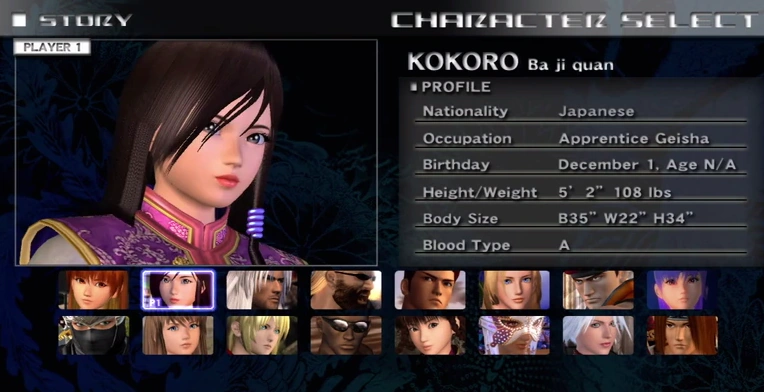 - Kokoro, a young girl currently training to become a geisha. Though she enjoys her lessons, Kokoro's heart and soul truly belong to her ba ji quan, and despite her mother's worries, she enters to the tournament to test herself.