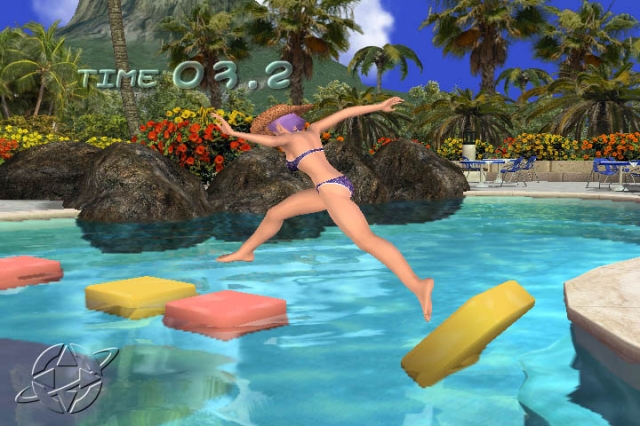 The objective of Pool Hopping is relatively simply: while being timed, the player just needs to move their character from one side of the pool to other by jumping on the pink and yellow floating pads. To successfully hop to the next pad, players must conduct the correct jump to stop their girl from falling into the water; tapping a face button results in a short jump, holding it results in a long jump.