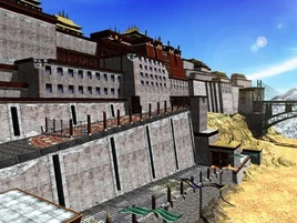 The exterior of the stage resembles Potala Palace in Tibet. In all console versions except the North American Dreamcast release, players can knock their opponent into the building and the fight continues in a temple situated around a giant dragon statue.