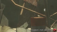 There are three known Danger Zones. The first is triggered when a fighter is thrown into an unstable shelter supported by an orange barrel located in the first half of the arena. When the attacked fighter is thrown against it, a rocket propelled grenade will come from the opposite direction and blow up when it impacts with the fighter, causing additional damage. The second is in the latter half of the stage when a helicopter crashes to the ground. When fighters are thrown against it, it will explode and cause more damage. The third is a door, marked with an orange 'X,' also in the latter half of the stage. When fighters are launched against it, a breaching charge will blow the door outward, causing extra damage.